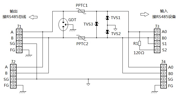 RS485/422/CAN lightning protector and bus connector. Integration of lightning protection and surge protection and bus connector: Protection against lightning, static, surge voltage and various transient over-voltage; Convenient for RS485/422/CAN equipment networking; Optional jumper with built-in 120 ohm terminal resistor; Maximum applicable communication rate: 20Mbps: Response time: <1ns; DIN35mm standard lead rail mounting; Suitable for RS485/422 and CAN interfaces and all fieldbuses based on RS485/422 and CAN interface, such as RS485/422/PROFIBUS/PPI/MPI/CC-Link/CAN/DeviceNet/CANOpen.